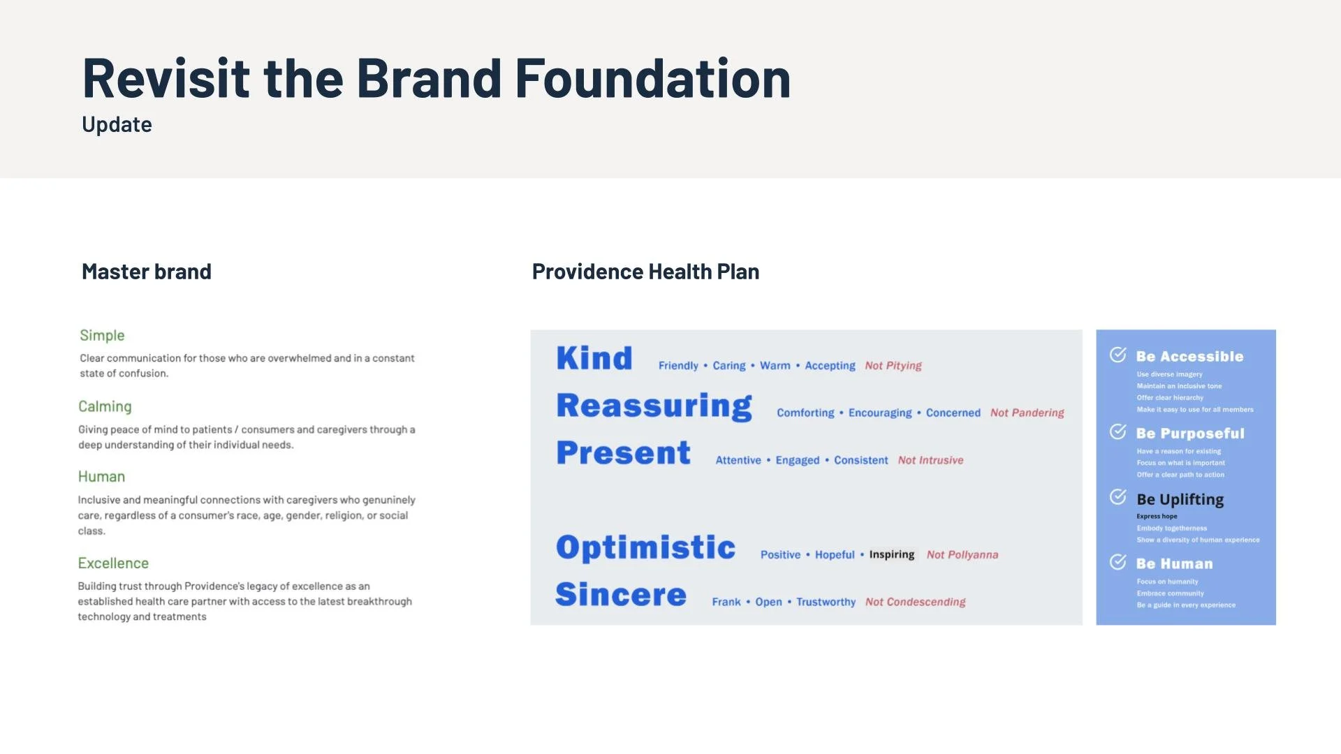 The foundations of the Providence Health Plan’s brand were strong — there was no need for substantive change. Rather, a few small but mighty tweaks to the brand’s characteristics and design principles cleared the way for visual alignment.